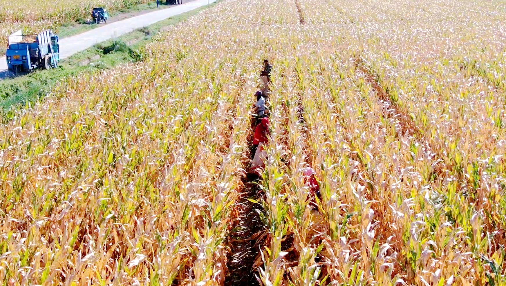 走進梨園村的田間地頭,處處可見村民們忙碌的身影。他們正麻利地將一個個沉甸甸、金燦燦的玉米掰下,臉上洋溢著豐收的喜悅;田間道上,運輸玉米的農用車輛來回穿梭著,伴著機器的轟鳴聲將一袋袋玉米裝車運走,呈現出一派繁忙景象。