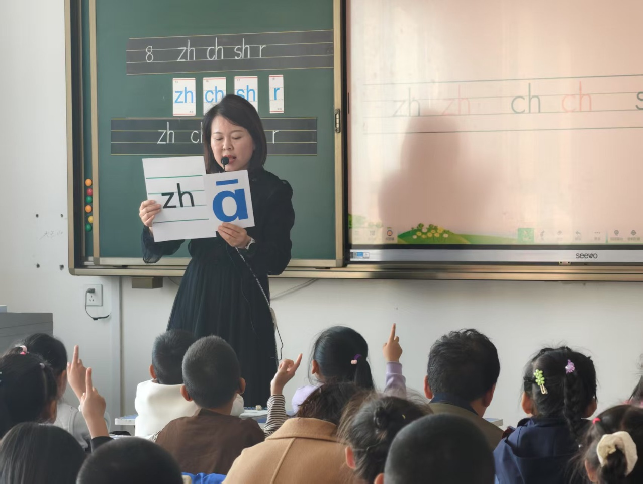 活動中,甘泉街小學何麗娜老師執教一年級拼音課《zh ch sh r》。她通過生動的情境創設、趣味游戲和多樣化的拼讀訓練,引導學生準確掌握四個聲母的發音與書寫,課堂氛圍輕松活潑,充分體現了“在趣中學、在練中固”的教學理念,為拼音啟蒙教學提供了良好示范。二年級則由白玉香老師帶來識字教學課《葡萄溝》。白老師巧妙運用圖文結合、字理溯源、語境拓展等方式,幫助學生理解生字含義、掌握構字規律,并引導學生在朗讀與表達中鞏固字詞運用,課堂扎實高效,展現了識字教學與閱讀理解的自然融合。