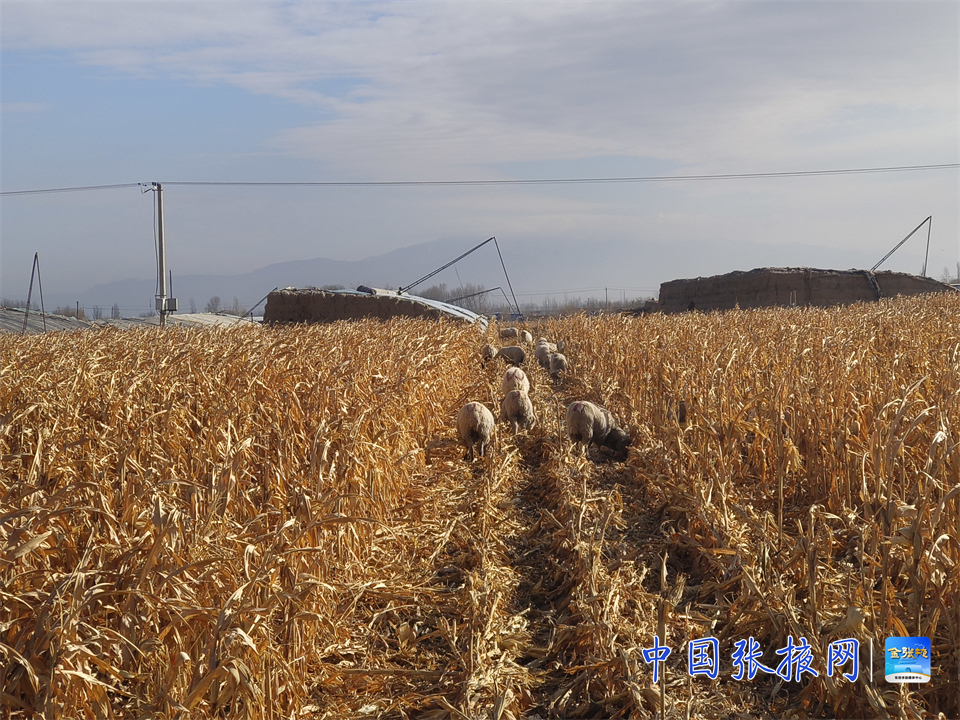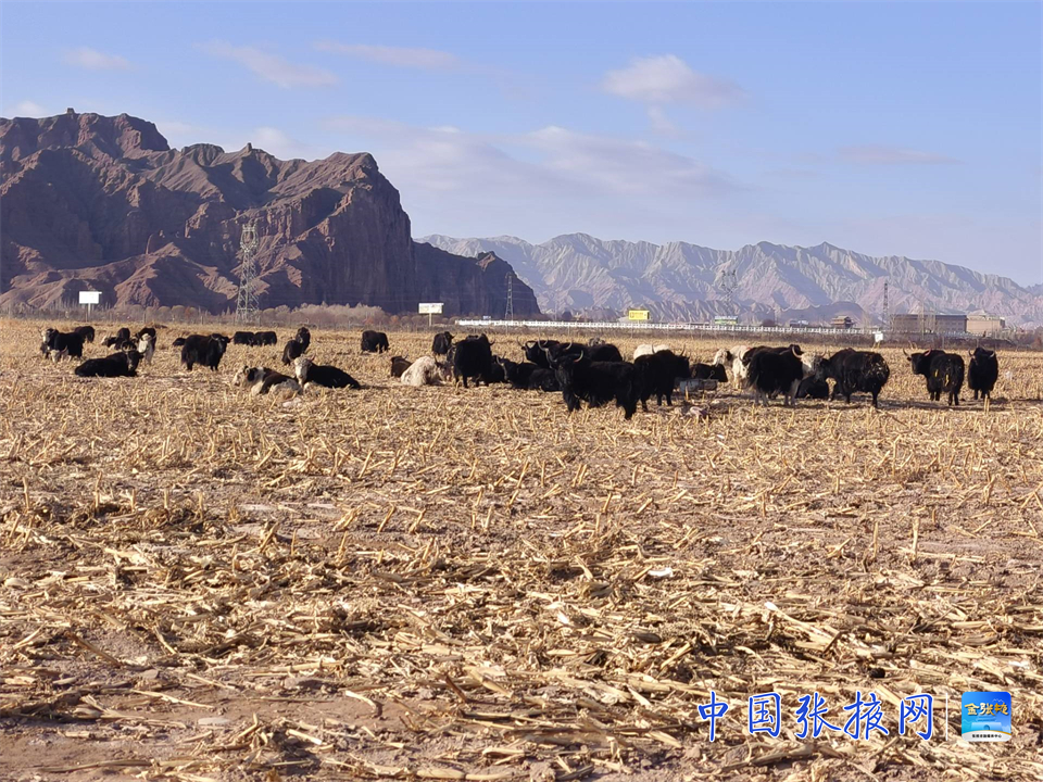 據悉,每年10月至次年3月,祁連山下的牧民便開始從世代放牧的草場遷徙至農區租田借牧。作為重要借牧目的地之一的倪家營鎮,每年秋收后,玉米秸稈地便成為青海、肅南借牧群眾眼中的“寶地”。“這里的秸稈營養成分高,牛羊采食后上膘快、奶水足,羔羊成活率也顯著提高,既節約了成本、又保護了草場,還能把牛羊喂得膘肥體壯。”在臨澤縣倪家營鎮南臺村借牧的肅南縣康樂鎮康豐村牧民黨員高永海說。